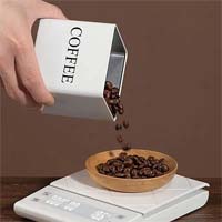 Elegante Metallbehälter mit praktischem Stülpdeckel, ideal zur stilvollen Aufbewahrung von Kaffeebohnen, Tee, Zucker. Inklusive passendem Holztablett – perfekt als täglicher Organizer in der Küche.