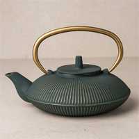 Diese stilvolle Gusseisenkanne verleiht jeder Teestunde einen Hauch von Luxus – und das ganz wörtlich: Henkel und Relief glänzen in edlem Gold und setzen elegante Akzente zur tief dunkelgrünen Grundfarbe. Das harmonische Farbspiel verleiht der Kanne eine besonders hochwertige Ausstrahlung und macht sie zu einem echten Blickfang.