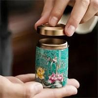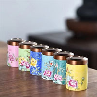 Set aus 6 kleinen hübschen emaillierten Keramik-Teedöschen.