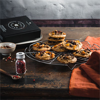 In der eleganten, schwarzen Geschenkbox mit Sichtfenstern kommen die bunten Pfefferfarben im Kontrast zum weissen Steinsalz und den würzigen Mischungen besonders schön zur Geltung.