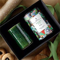Moya Bio-Blatt-Grüntee-Set in einer eleganten schwarzen Papierschachtel.