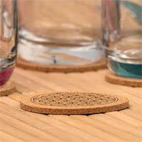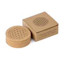 Idealer Schutz für Ihre Gläser durch Korkuntersetzer mit der Blume des Lebens.