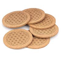 Idealer Schutz für Ihre Gläser durch Korkuntersetzer mit der Blume des Lebens.