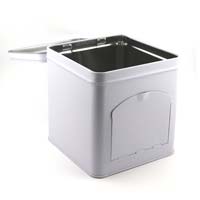 Quadratische Scharnierdeckeldose mit Schublade aus Weissblech | 117mm x 117mm x 120mm