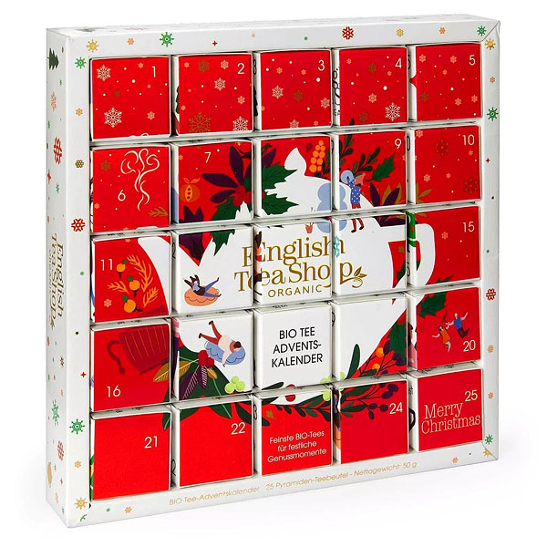 Beginne jeden Dezembermorgen mit einer besonderen Überraschung: Der grosse Teebuch Adventskalender von English Tea Shop lädt dich ein, 25 feine Bio-Teemischungen zu entdecken. Wie ein echtes Buch lässt er sich aufschlagen – im Inneren verbergen sich liebevoll gestaltete, einzeln verpackte Tee-Spezialitäten.
