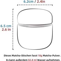 Mit einem Fassungsvermögen von 18 g Matcha-Pulver ist dieser kompakte Teekanister leicht zu reinigen. Hergestellt aus Keramik, ist er BPA-frei, plastikfrei und bleifrei, was Sicherheit und Umweltfreundlichkeit garantiert.