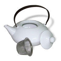 6 Teiliig - Kanne mit Sieb und 4 Cups auf Bambustablett | Tablet: d 280mm / Kanne: d 140 mm / h 90 mm